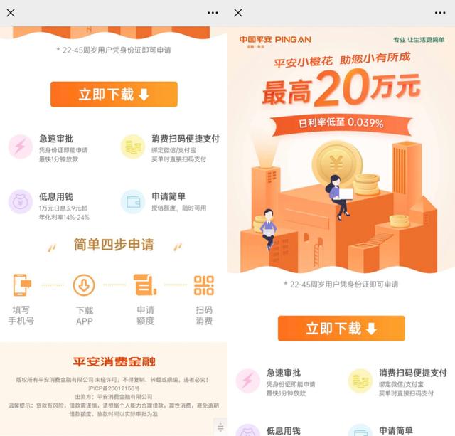 而小橙花为个人消费循环信用贷款产品,可以为用户提供大额现金提现服务,额度最高20万元。据了解,平安消金APP直营产品的综合授信在1000元至20万元,其中取现额度为50%。